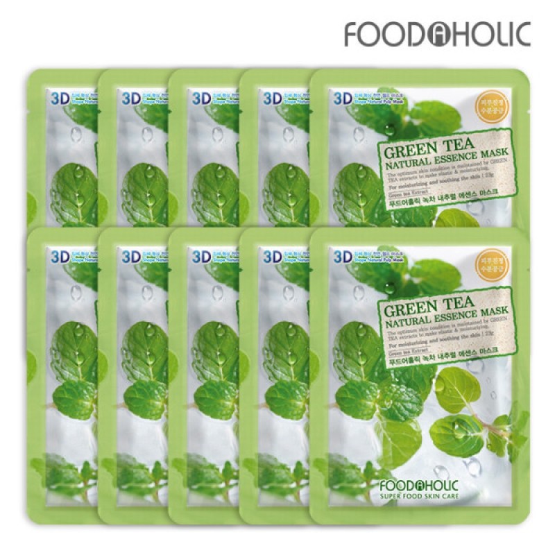 Foodaholic 3D Green Tea Natural Essence Mask Pack (10 sheets) / 푸드어홀릭3D 녹차 내추럴에센스 마스크팩(10매)