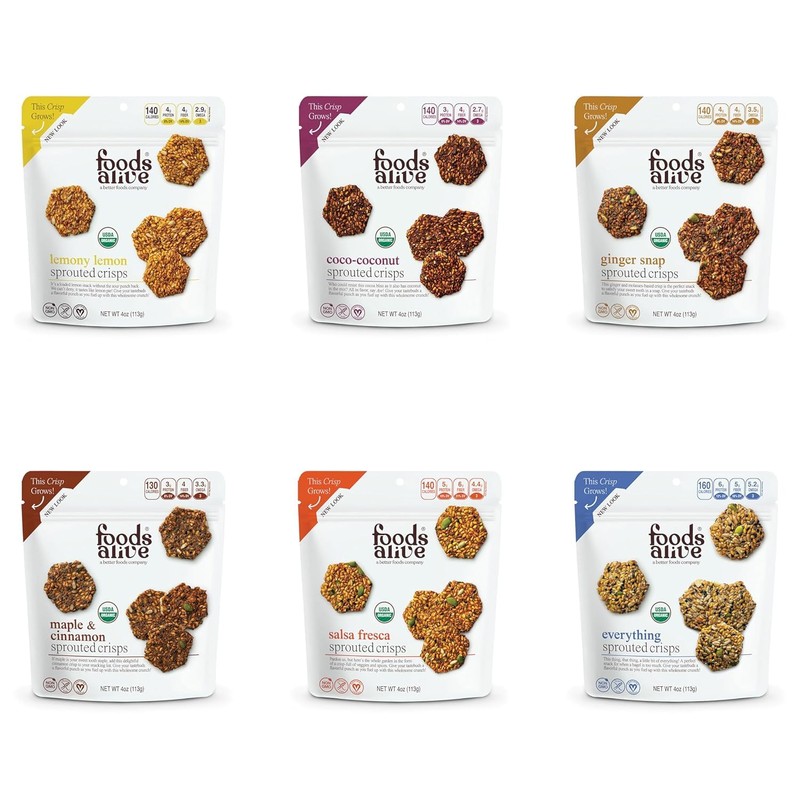 Foods Alive Sweet + Savory Organic Sprouted Crisps Bundle (6 flavors), 4oz, Gluten Free Crackers