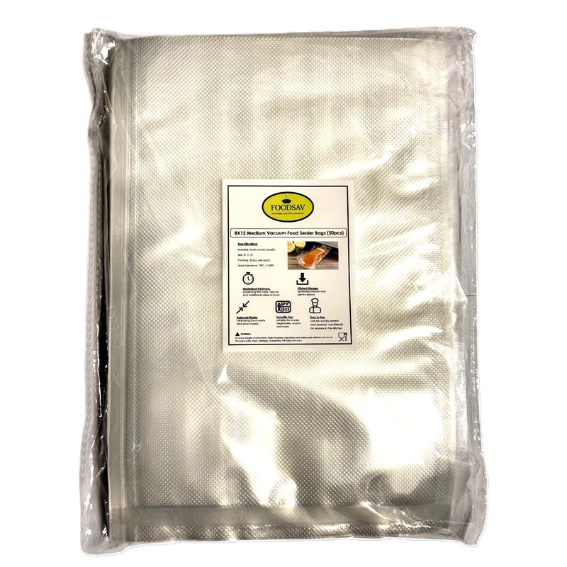 FoodSav Medium 8X12 Vacuum Food Sealer Bags, Precut, Transparant, Commercial Grade, BPA Free, Heavy Duty, Storage for Meal Meat Vegetables (50 pcs)