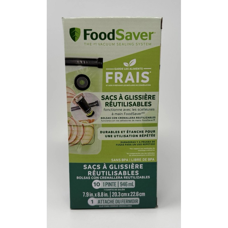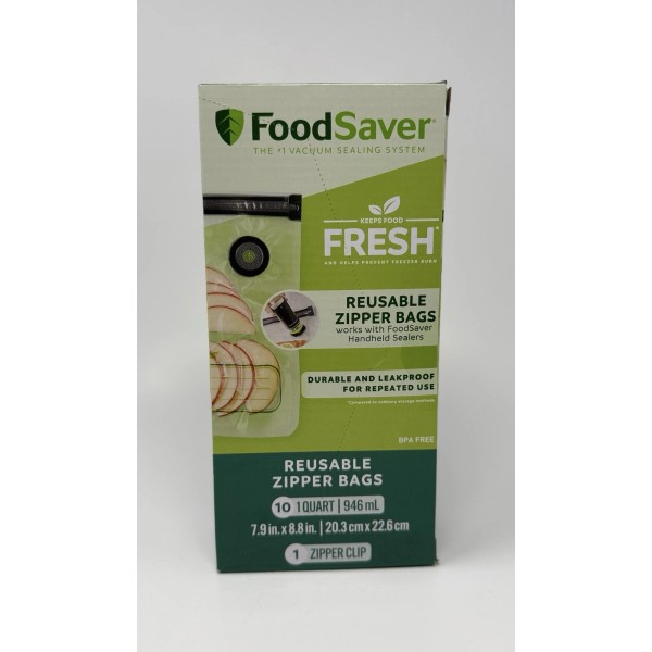 FoodSaver BRAND NEW FoodSaver 10, 1 Quart Reusable Vacuum Zipper Seal Clip Food Bags