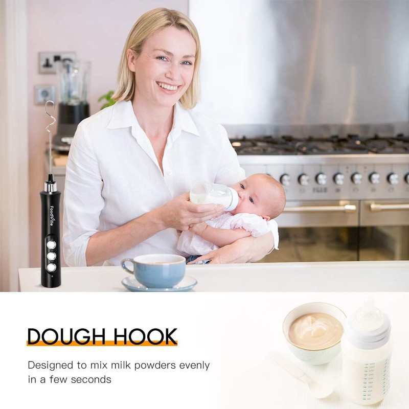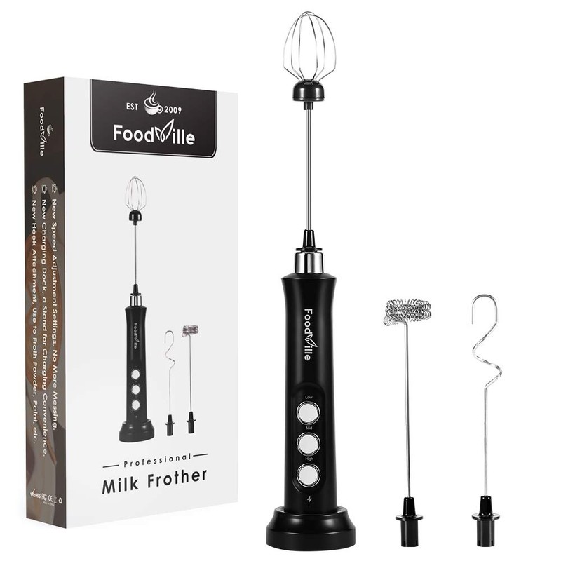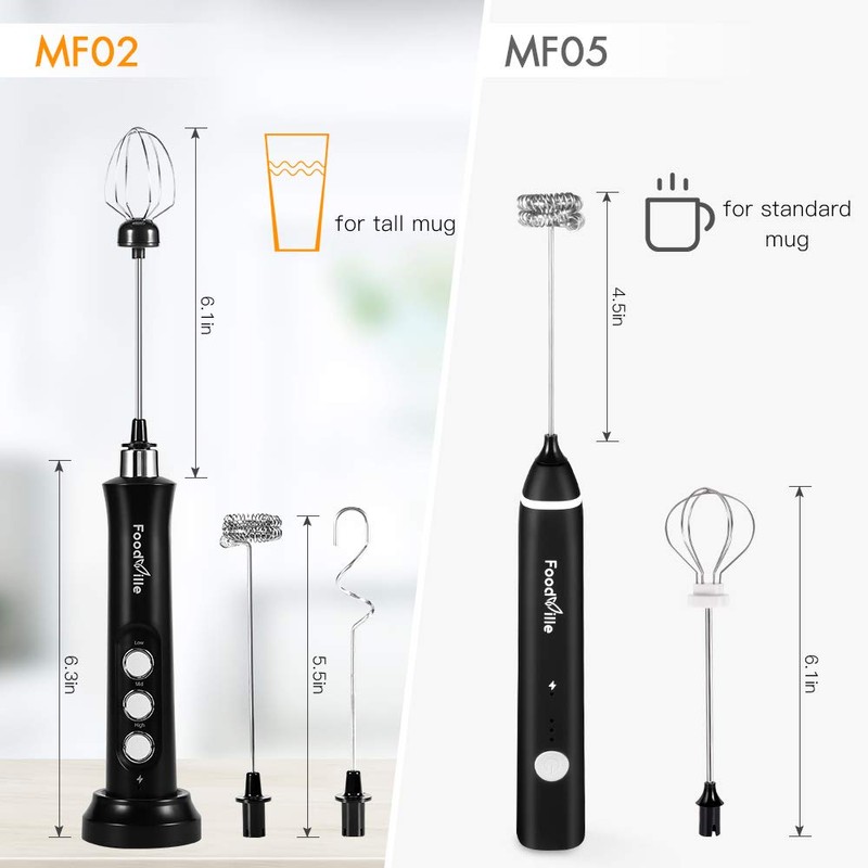 - Professional Kitchen & Barista Tool: With 2 versatile whisks, the FoodVille electric milk frother is one of the best kitchen essentials to make the perfect milk foam for your morning & afternoon coffee, and to help you get smooth batter consistency & fluffy whipped cream in 5 minutes.