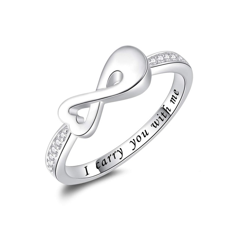 Fookduoduo Infinity Cremation Ring for Ashes - 925 Sterling Silver Cremation Urn Jewelry I Carry You with me Memorial Keepsake Locket Rings for Human/Pet Ash (Silver 10)