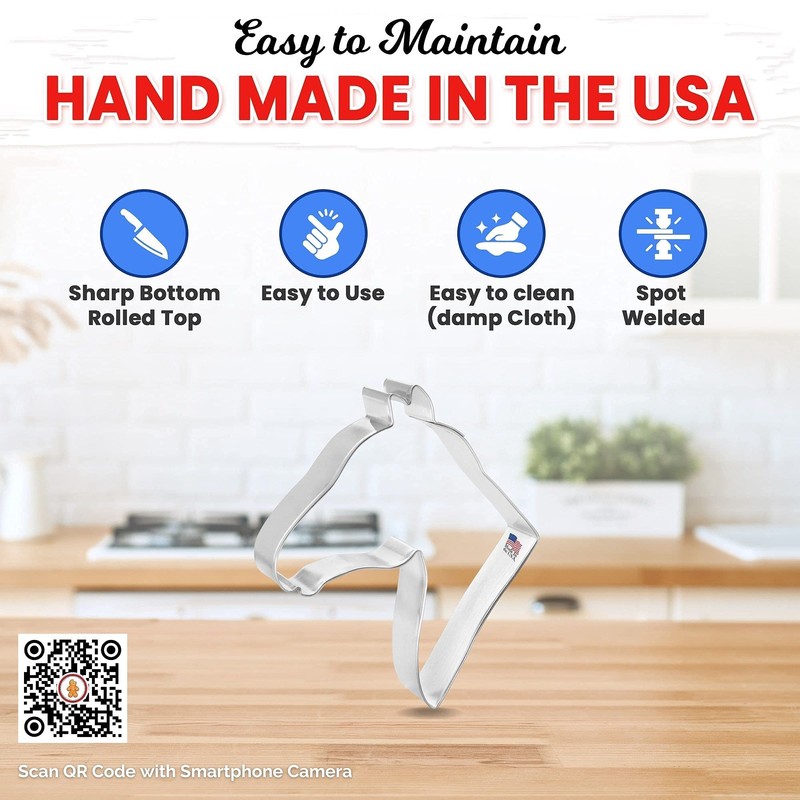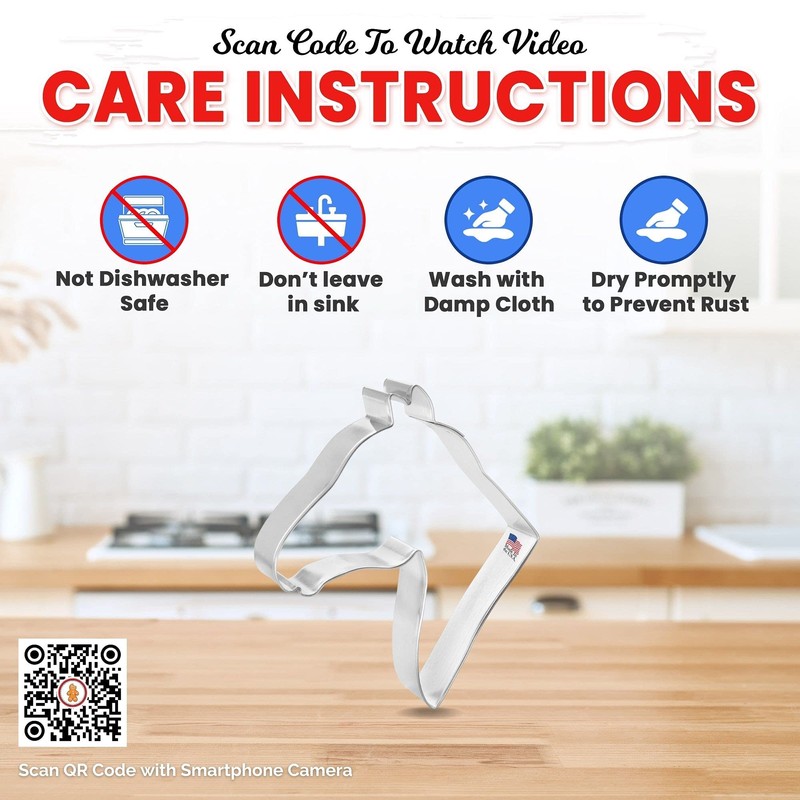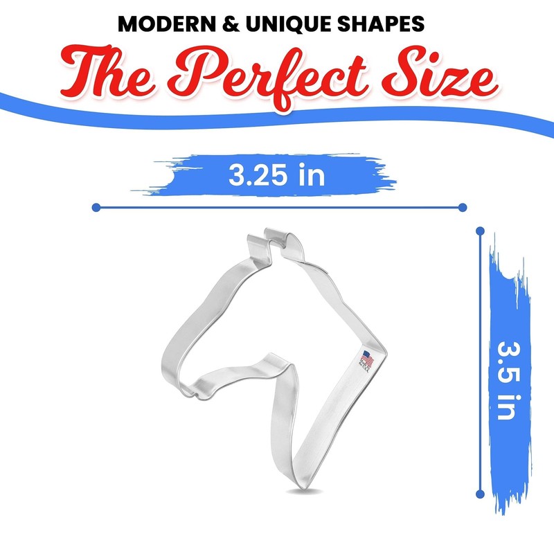 - Sturdy and Precise Cookie Cutter Built to Last - Horse Head shaped cookie cutter, made of sturdy tin, size: 3.5 inches. Care for this unique cookie cutter by wiping it with a damp cloth to clean, this cookie cutter is not dishwasher safe but extremely easy to clean and maintain for years