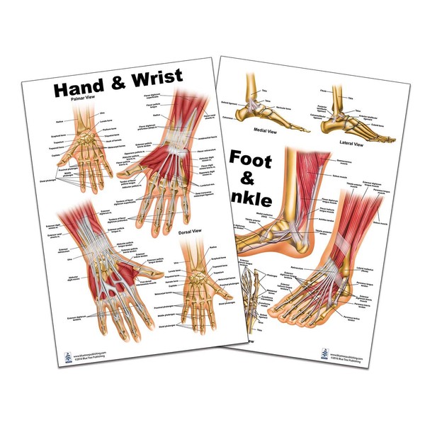 Blue Tree Publishing Foot and Ankle, Hand and Wrist Anatomical Poster Set, size 24Wx36T