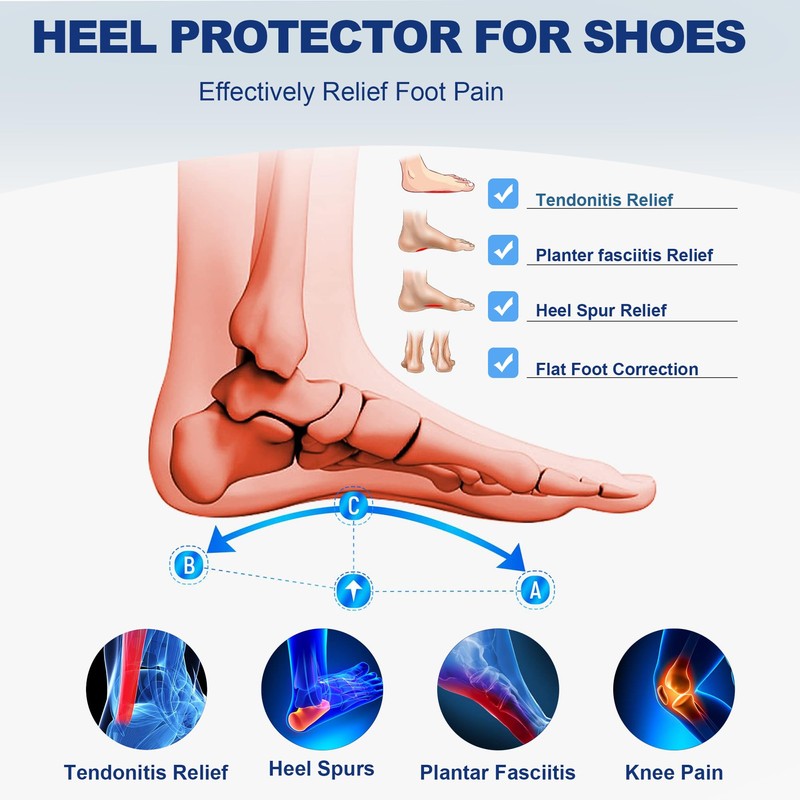 - 【Immediate and Comprehensive Pain Relief】: Our heel cups provide instant relief for a range of foot issues including plantar fasciitis, heel spurs, Achilles tendonitis, and Sever's disease. Ergonomically designed, they alleviate heel pressure and reduce pain in the knees, ankles, legs, and back while supporting the arch, making them perfect for daily use.