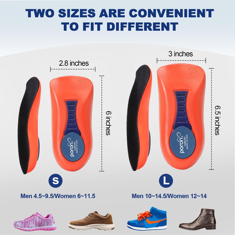 - 【Anti-Slip Design for Enhanced Comfort】: Featuring a moisture-wicking, anti-slip fabric top layer, these heel cups keep your feet cool and dry while preventing slippage. The bottom includes an anti-slip gel design that ensures the insoles stay securely in place, and the Poron material enhances grip to prevent movement during intense activities.