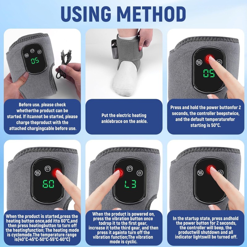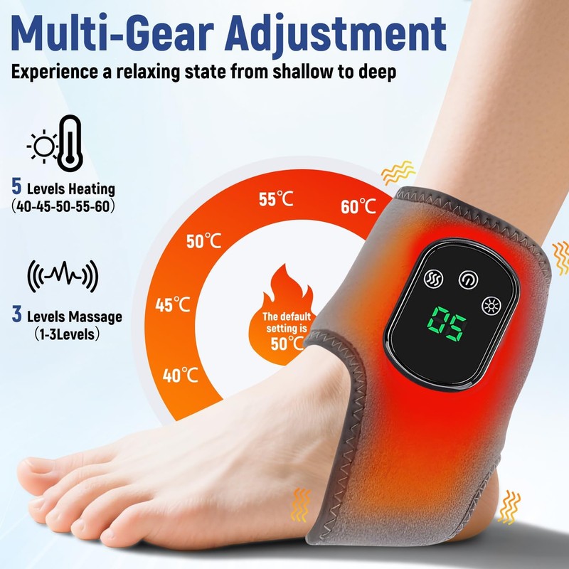 Wireless Design: The 3-in-1 Foot Revive Massager has a 1800mAh battery. It is easy to use and allows you to move freely without long cables and power supplies. The ankle heating pad is small and lightweight and can be easily taken to the office, gym or travel