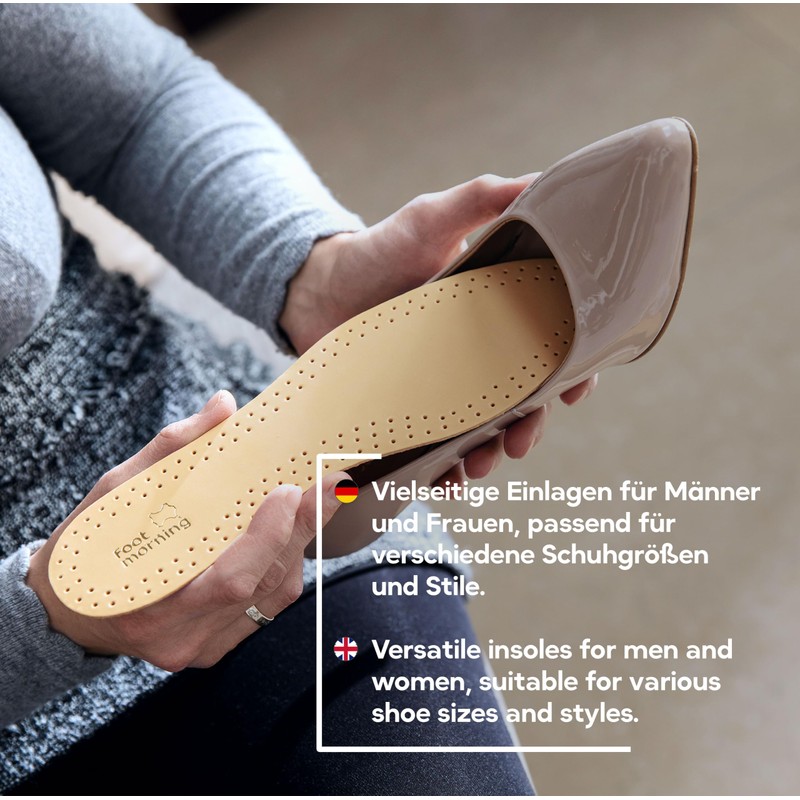 - QUALITY LEATHER CRAFTSMANSHIP: Embrace comfort and elegance with Foot Morning City insoles, made from colourfast refined sheep leather. These insoles are naturally tanned, ensuring both environmental responsibility and essential durability.