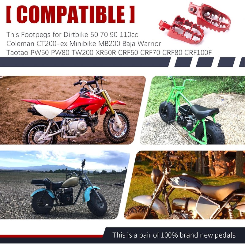 【COMPATIBLE 】This Footpegs for Dirtbike 50 70 90 110cc Taotao PW50 PW80 TW200 XR50R CRF50 CRF70 CRF80 CRF100F Coleman CT200-ex Minibike MB200 Baja Warrior
