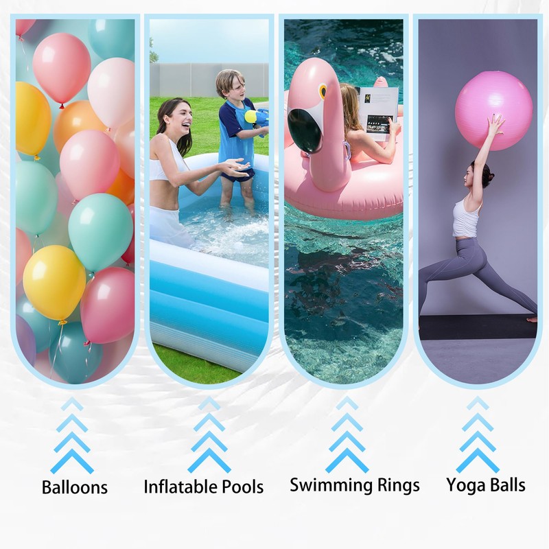 - Versatile Compatibility:Designed to meet diverse needs, this pump works seamlessly with a wide range of inflatable items. From pool toys for kids' summer fun to sports equipment like soccer balls and beach balls, it comes with universal valve adapters to fit most standard valves, making it a must-have multi-purpose tool for home, travel, and outdoor adventures