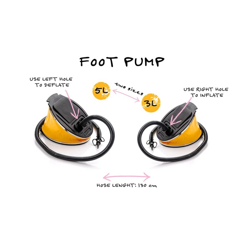 - Have you already prepared that your guests or children can enjoy fun drinks? - Our foot pump is ideal for inflating mattresses, air mattresses, pool mattresses and inflatable leisure toys. It is designed to make work simple and stress-free.