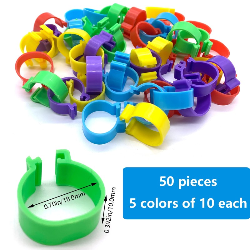 - 5 colours mix and match: there are 5 colours of leg rings, 50 pieces in total. The amount is enough to meet your farm needs. You can quickly identify the poultry you know. Very practical and time-saving.