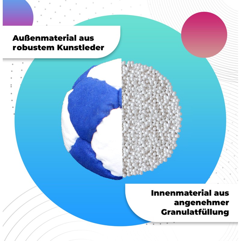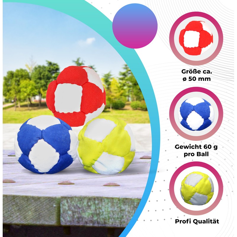 - 🛡️ 3 FOOTBAGS WITH COMFORTABLE GRANULATE FILLING: Ideal capacity, do not jump away when they fall on the ground. 3 footbags in colourful colours included in the set.