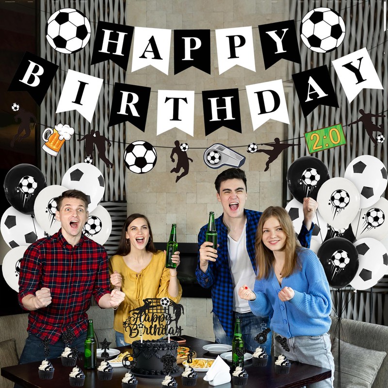 - Occasion: Perfect for football-themed birthdays, gender-neutral baby showers, or soccer team celebrations! The black & white balloons, banner, and cake topper create a stylish, sporty vibe for kids' parties, game nights, or trophy ceremonies