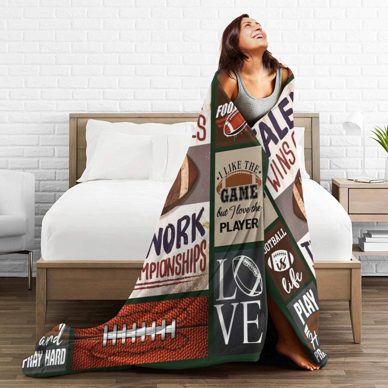 Football Blanket Rugby Throw Blanket Sport Football Competition Plush Soft Fu...