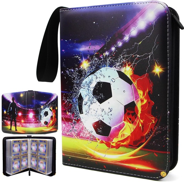 - 【Football card binder】--Our trading card holder have 4 pocket, 50 double-sided, which can hold up to 400 cards and provide plenty of space to get all your cards well organized instead of messy.