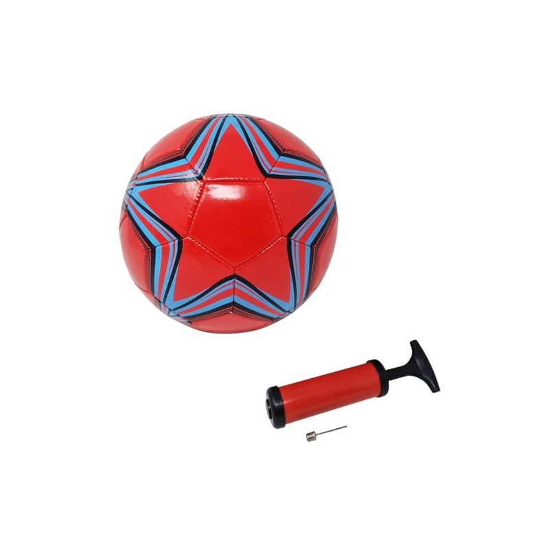 Football for Training or Match Red with Star Size 5 with Portable Pump