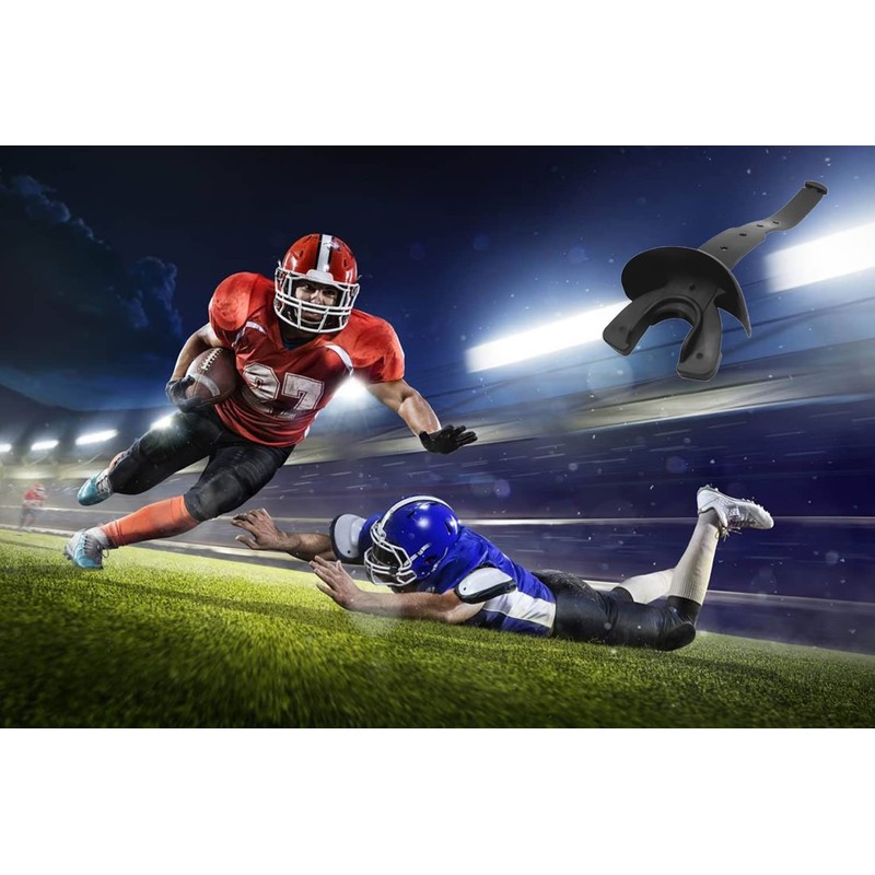 Football Mouth Guard, Double guard with Lip Protection, includes Helmet Strap (Black)