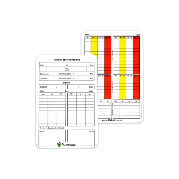 - The new generation of referee's game note cards, meets DFBnet requirements