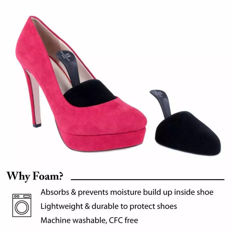 FootFitter Rounded Toe Foam Shoe Tree with Handle, Women's Large Sizes (8.5-11)The FootFitter Rounded Toe Foam Shoe Trees are cut from antibacterial, CFC-free foam ensuring both your shoe and sensitive skin are protected from harmful chemicals. The foam is flexible, allowing it to take the exact shape of the toe box. This creates a snug fit to reduce wrinkles and prevent creasing. A hard plastic handle makes these easy to insert and remove. As if we need another reason to love these shoe trees, their lightweight design makes them the perfect travel companion for your favorite pair!