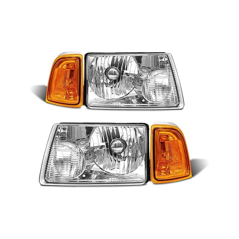 for 2001 2002 2003 2004 2005 2006 2007 2008 2009 2010 2011 Ford Ranger Headlight Assembly with Clear Lens Chrome Housing Amber Reflector Headlamp Replacement Left Right Pair