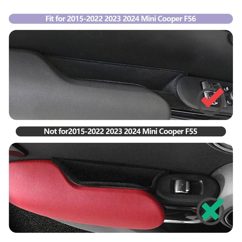- [Customized design] 2024 mini cooper accessories,mini cooper door storage tray for 2024 b mw mini cooper f56 specially designed for 2015 2016 2017 2018 2019 2020 2021 2022 2023 2024 2025 BMW Mini Cooper F56/Mini Cooper/Mini Cooper S/John Cooper Works/2021 2022 2023 Mini Electric hard top front door storage box, easy to put into the mobile phone pocket.NOT fit 4-door or 5-door models. NOT fit for F55/F57