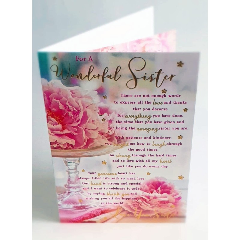 for A Wonderful Sister Birthday Card - 6" X 9"