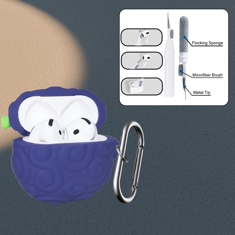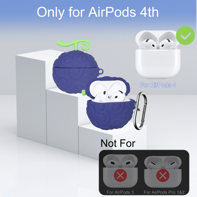 - 【Package Included】1 x Silicone protective case purple Devi fruit, 1 x carabiner, 1 x cleaning kit (Note:Airpod 4th generation charging case not included).