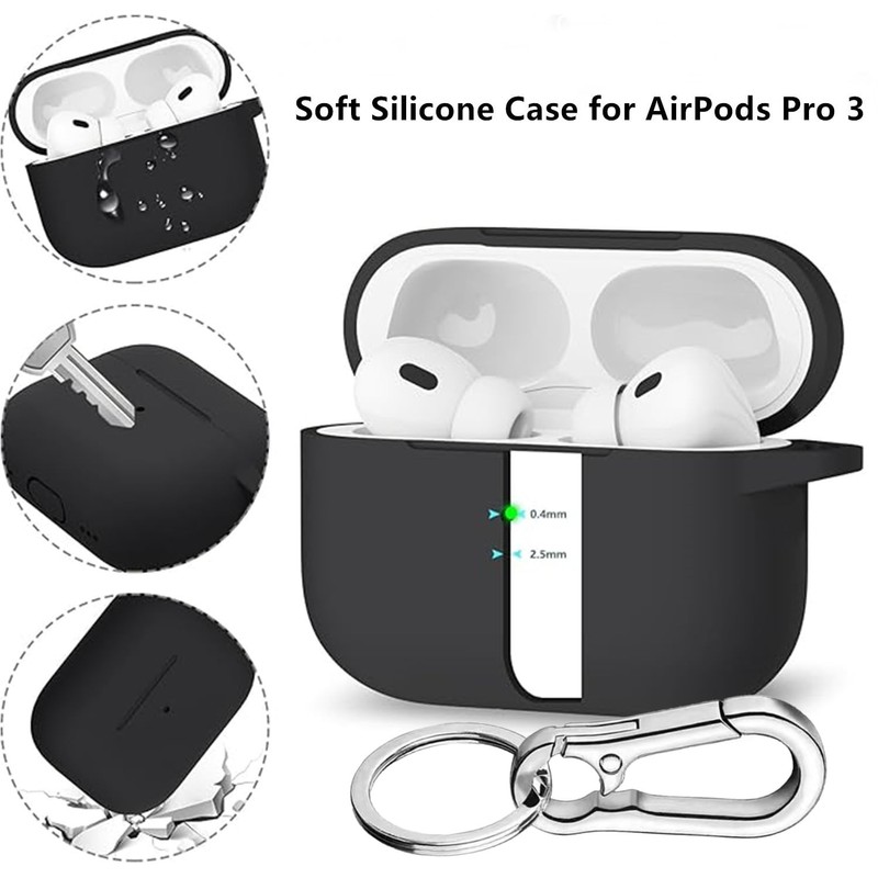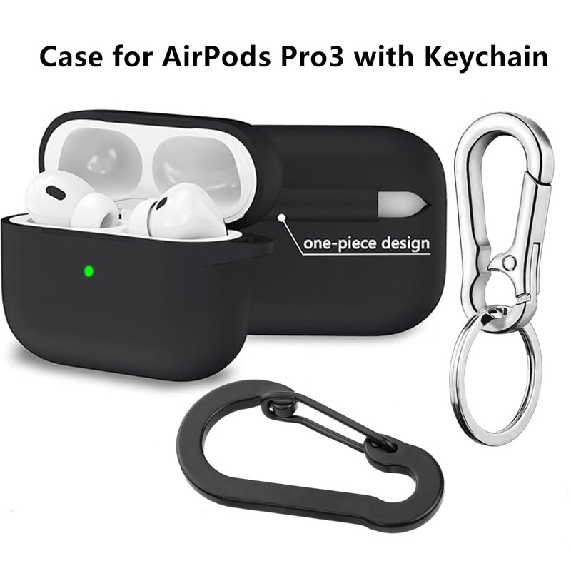 for Airpods Pro3 Case Cover, Soft Silicone Protective Case for Air pod Pro 3 Headphone with Keychain, Shockproof Cover Case for Airpods Pro 3th gen for Women Men (Black)