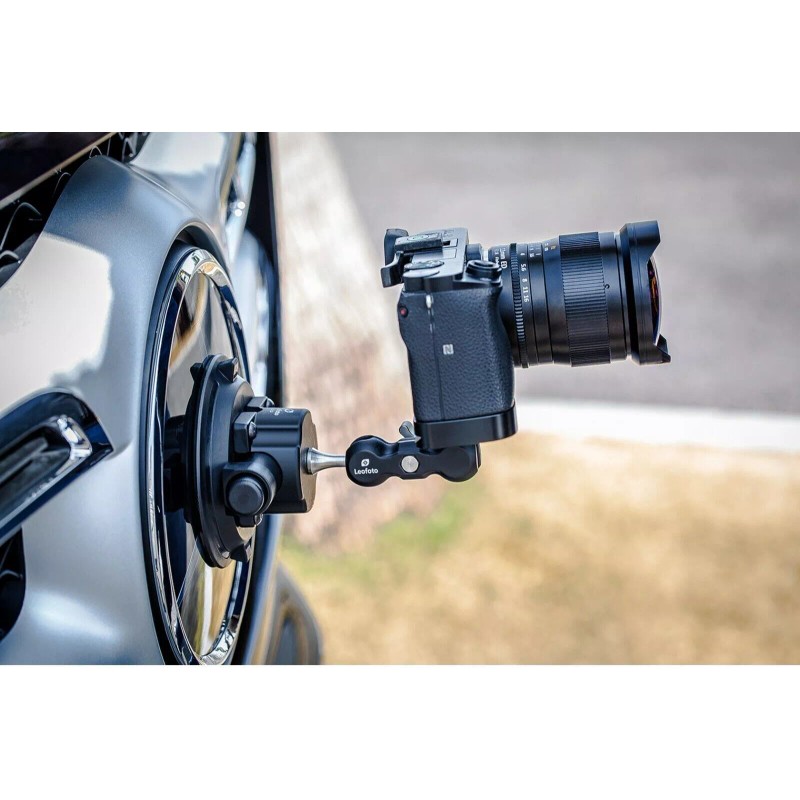 Mount a smartphone on a vehicle for motion shots with the Leofoto SC-02 Suction Cup Mounting Base. The suction cup mounts onto a flat, clean, non-porous surface and supports up to a maximum 88lb load.
