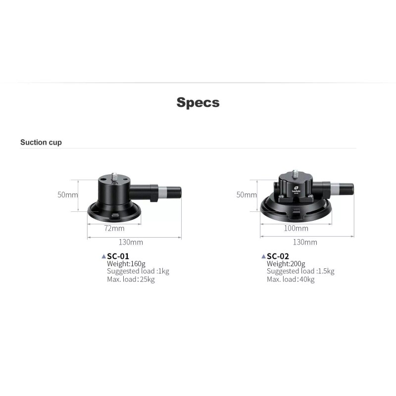 - The Leofoto SC-02 suction cup mounting base provides a strong grip on almost any smooth nonporous surface including countertops, glass, metal and more.