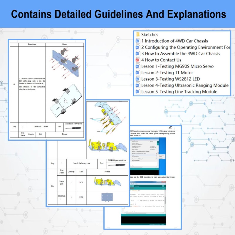- The DIY car kit will be easy to assemble according to the instructions we provide.It also comes with a battery case that can hold two 18650 batteries (batteries not included)