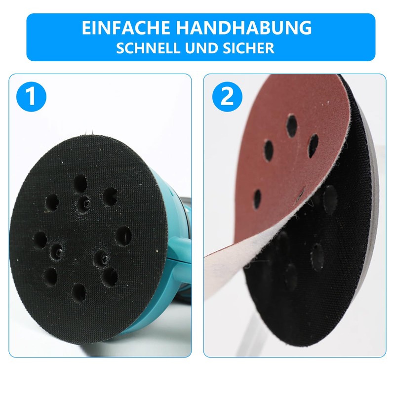 3. Sander sandpaper backing pads adopt 8 holes design to ensure effective material removal during sanding process, prevent clogging, ensure a clean working area and improve efficiency.