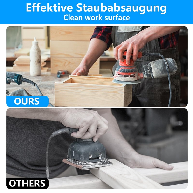 • Wide application: Suitable for sanding wood, pre-treating metal or finishing plastic parts. An ideal choice for furniture renovation, car body restoration, model making, and is widely used in workshops, garages and various construction sites.