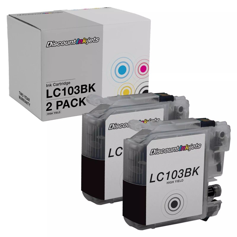 Our compatible LC103BK high yield black inkjet cartridges for your Brother printer is manufactured to meet the same specifications and performance standards as the Brother OEM LC103BK ink-jet cartridges. We guarantee that you will get the same quality printouts as your genuine Brother LC103BK ink jet cartridges or your money back. Why pay double for a LC103BK brand name ink cartridge? Save 79% compared to MSRP on all the LC-103 series inkjet cartridges for your Brother printer. These cartridges are conveniently equipped with a smart chip that allows you to monitor and track your ink levels. Qty: 2 We offer a 100% Quality Satisfaction Guarantee on our compatible LC103BK.
