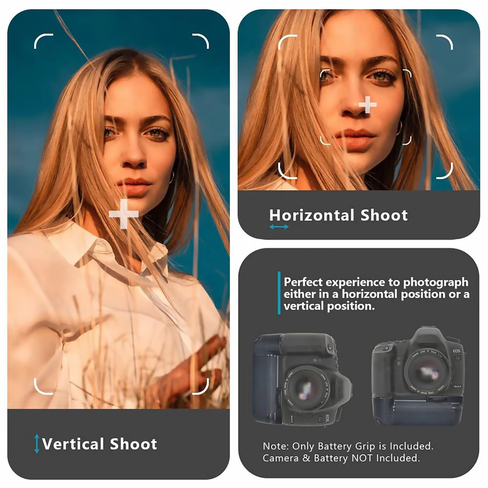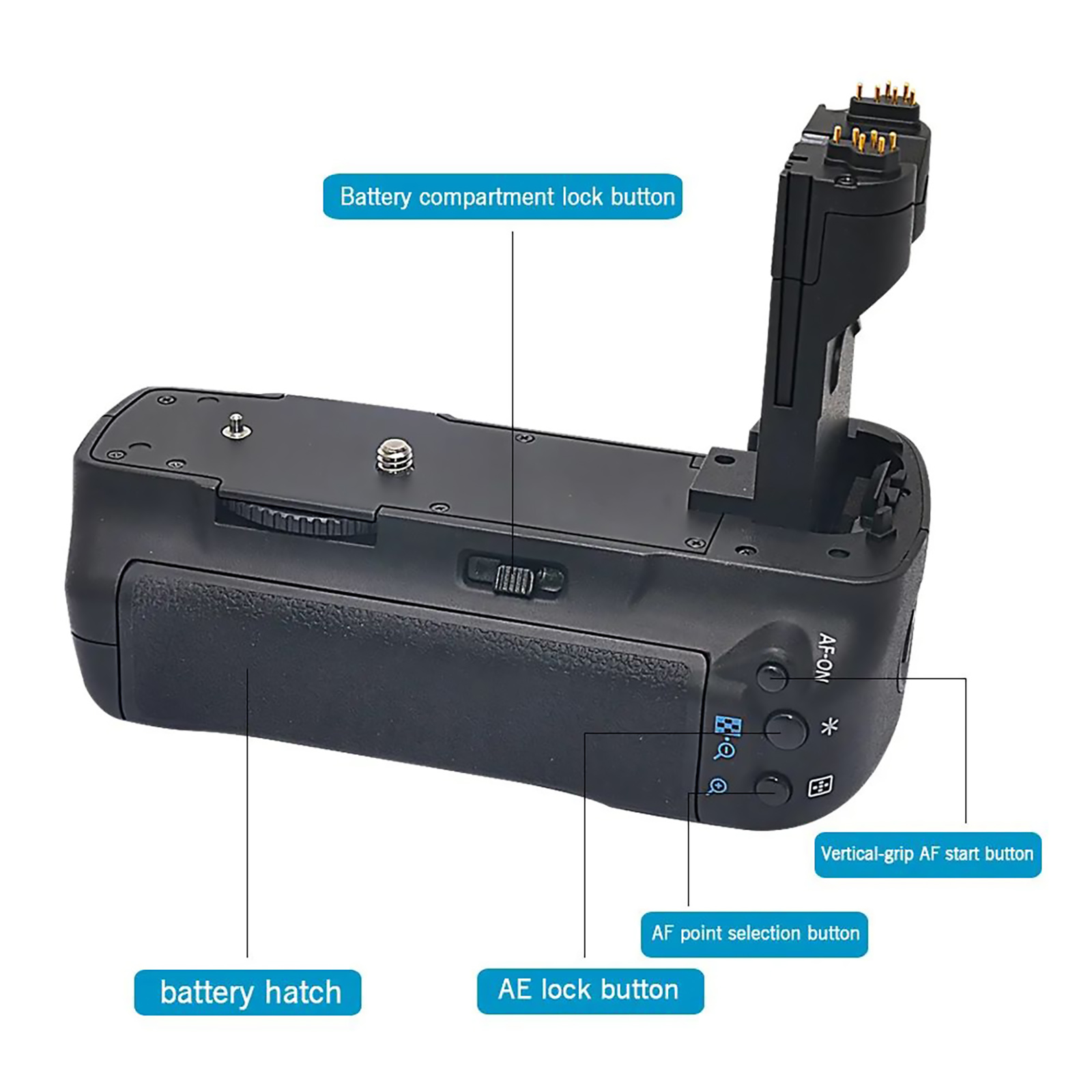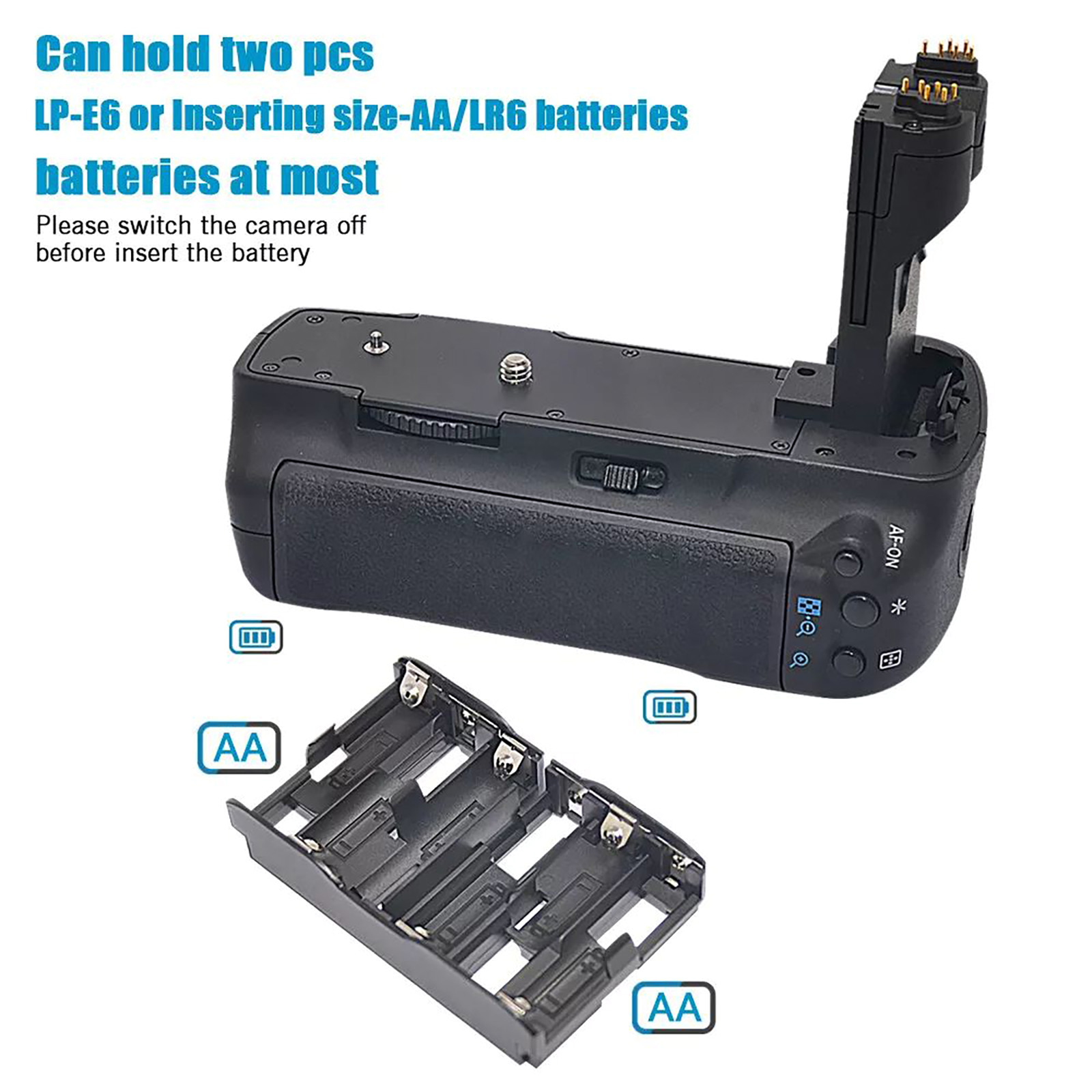 Applicable Battery: For 1 or 2 LP-E6 battery or 6pcs AA batteries (Batteries are not included)