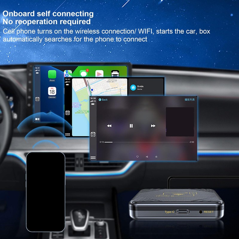 - Support 2 system: a 2 in 1 AI box not only brings CarPlay into your vehicle, but also supports Android car, allowing the convenient switch from wired to wireless and makes your driving experience smarter