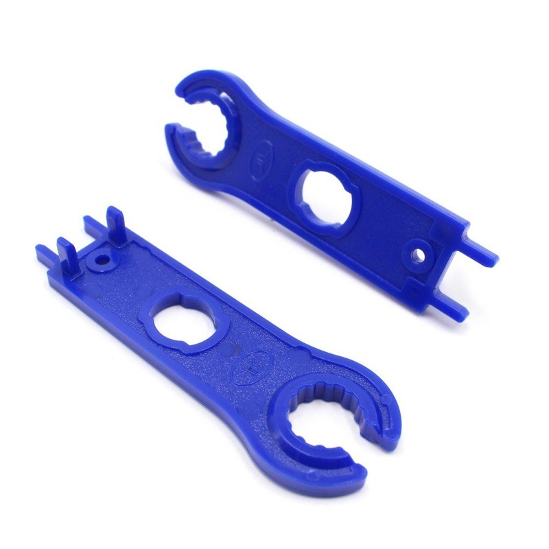 - The connection of the solar panel PV cable with MC4 connectors used for spanner wrench