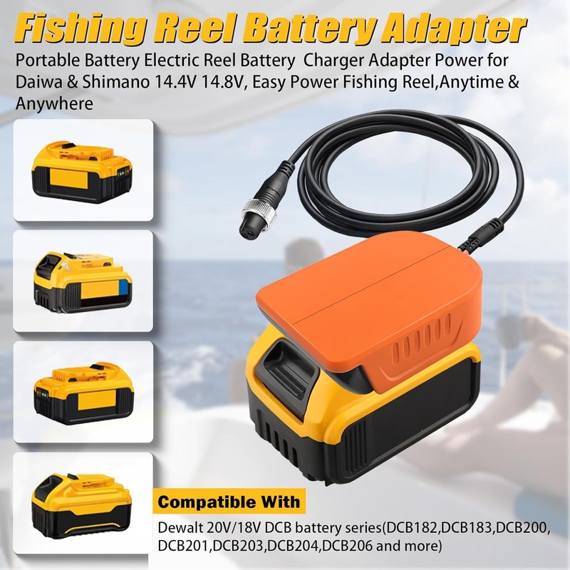 - 【Compatible for Dewalt 20V MAX Battery】This battery adapter Suitable for Dewalt 20V MAX XR lithium batteries, such as DCB180 DCB181 DCB182 DCB200 DCB201 DCB203 DCB204 DCB206 DCB207 etc.. Work for Daiwa for Shimano14.4V Electric Fishing Reel(Battery not Included)