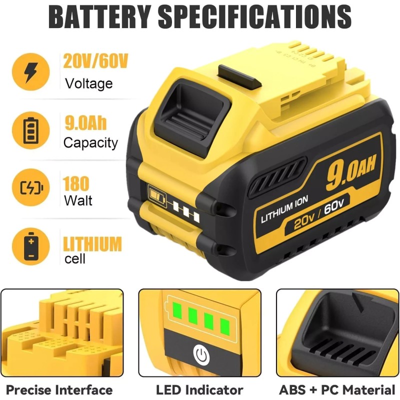 Replacement for Dewalt 60v max batteryDCB606, DCB606-2, DCB609, DCB609-2, DCB612, DCB612-2