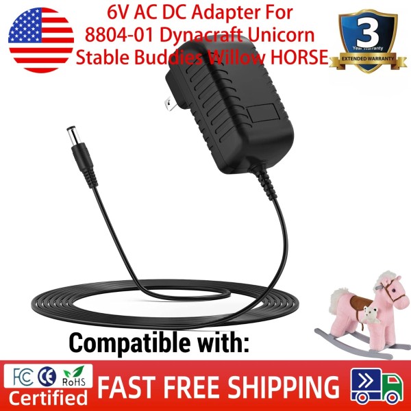 For Dynacraft 6V AC DC Adapter For 8804-01 Dynacraft Unicorn Stable Buddies Willow HORSE Power