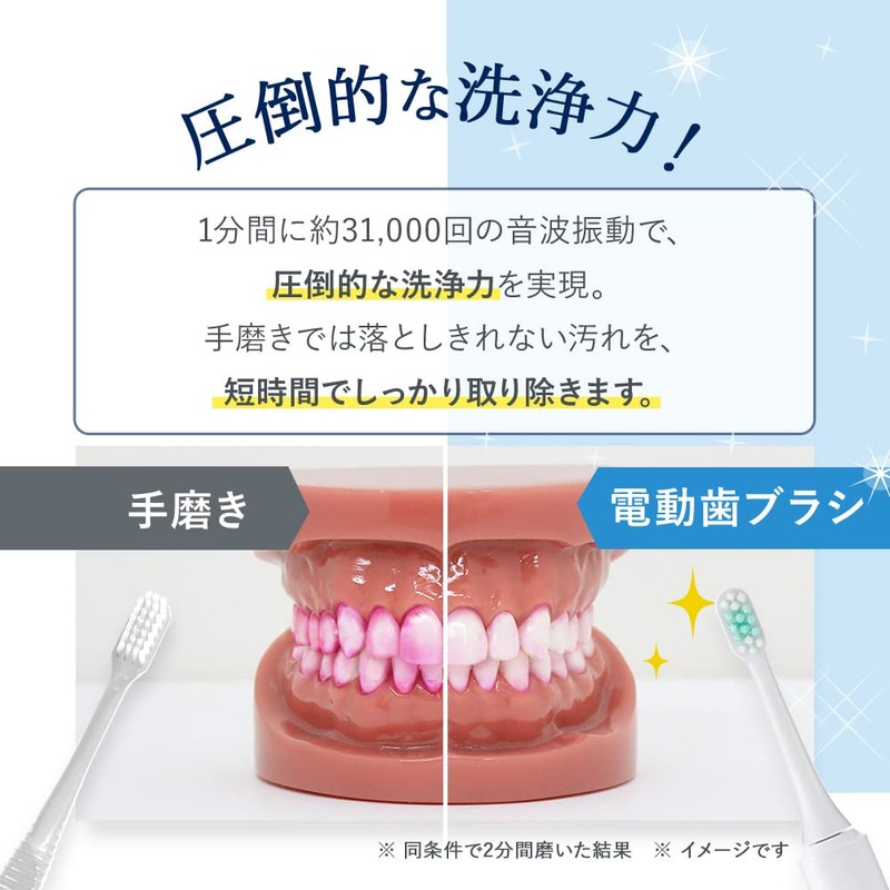 • Sonic vibration removes dirt (approximately 31,000 times/minute) and dirt from teeth and teeth and the perimeter pocket can be removed faster than hand polished. )