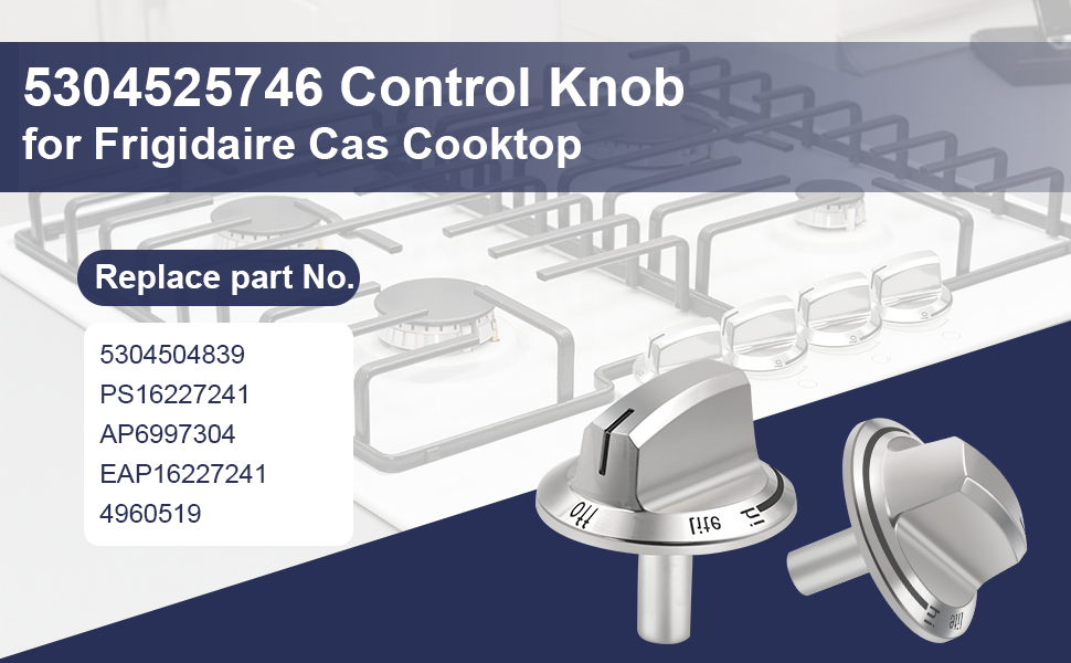 - 【Application】This control knob replacement replaces part number A03546301/02/03, 5304525746, 5304504839, PD00064795, 4960519, AP6997304, PS16227241, EAP16227241 and is compatible with FFGC3026SS FFGC3626SS FFGC3626SWC FGC3047QS and many more.