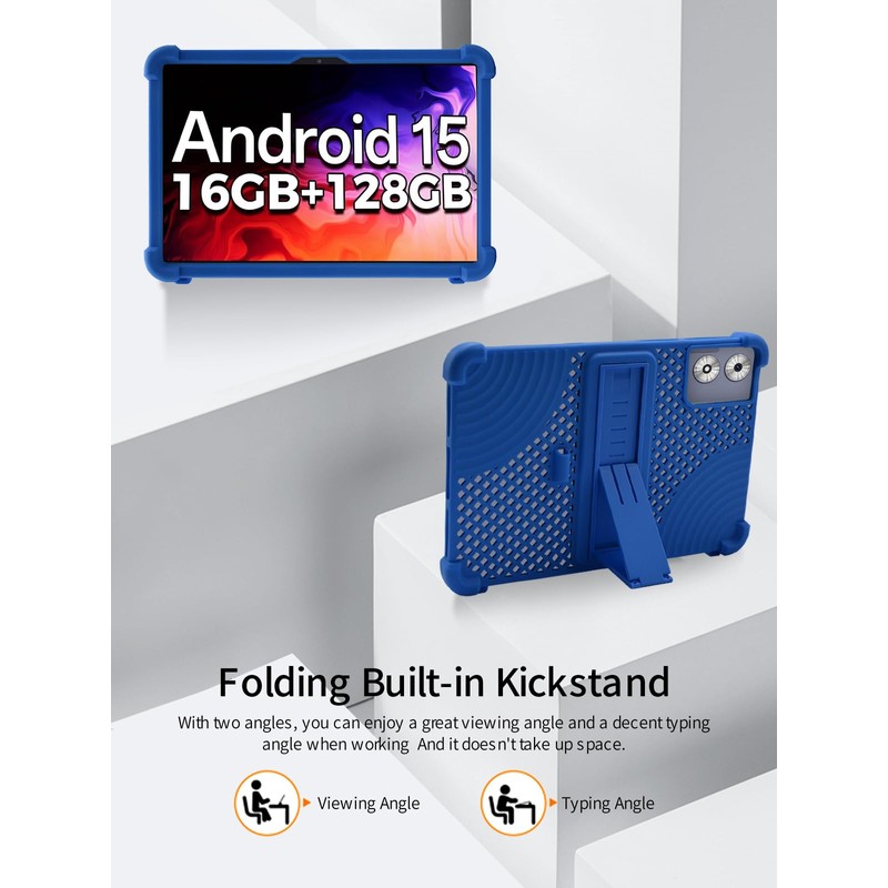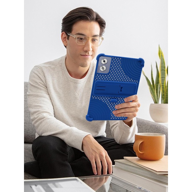 for Generic A119C 11 Inch Android Tablet Case,BOVUGAC Soft Silicone with Capacitive Pen,Heat Dissipation Design,Adjustable Stand,Shockproof,Kids Friendly(Blue)