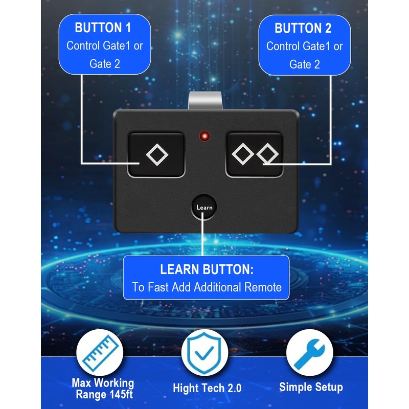 AXS1 Remote Transmitter with 3-Button Replacement for Automatic Gate Openers Compatible with Ghost Control Opener Systems