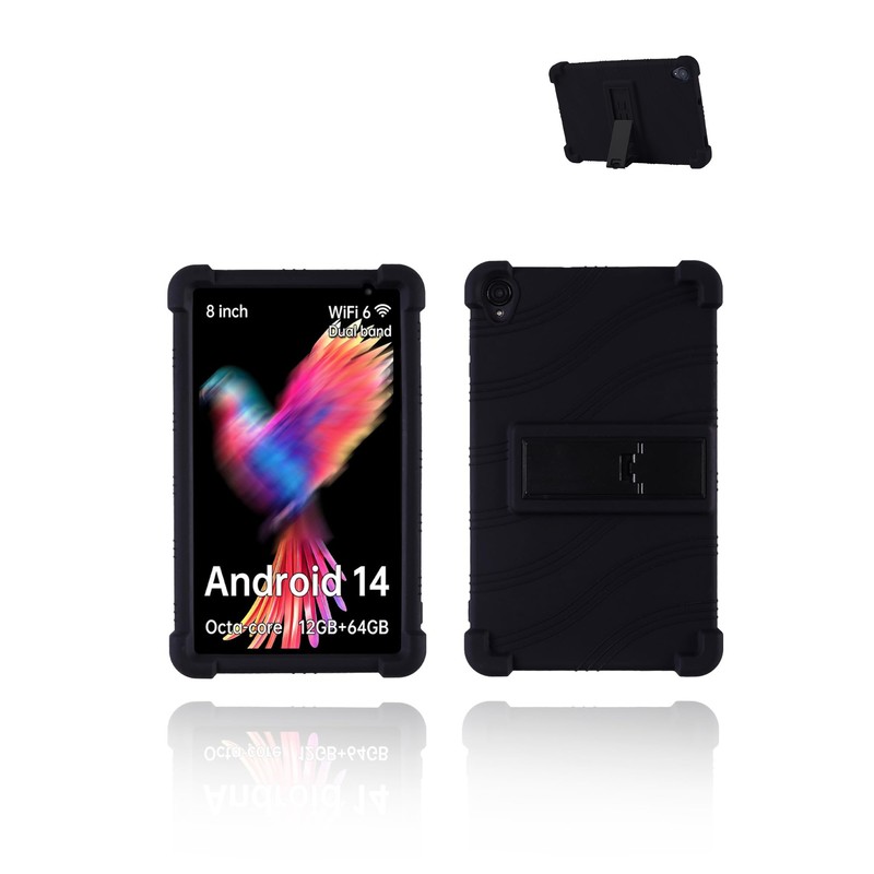for HAOVM M8 Android Gaming Tablet,8" 2.5K Ultra Clear Display Tablet Model Case,UYRUREL Soft Silicone Adjustable Stand Cover Lightweight Kids Friendly,Black.