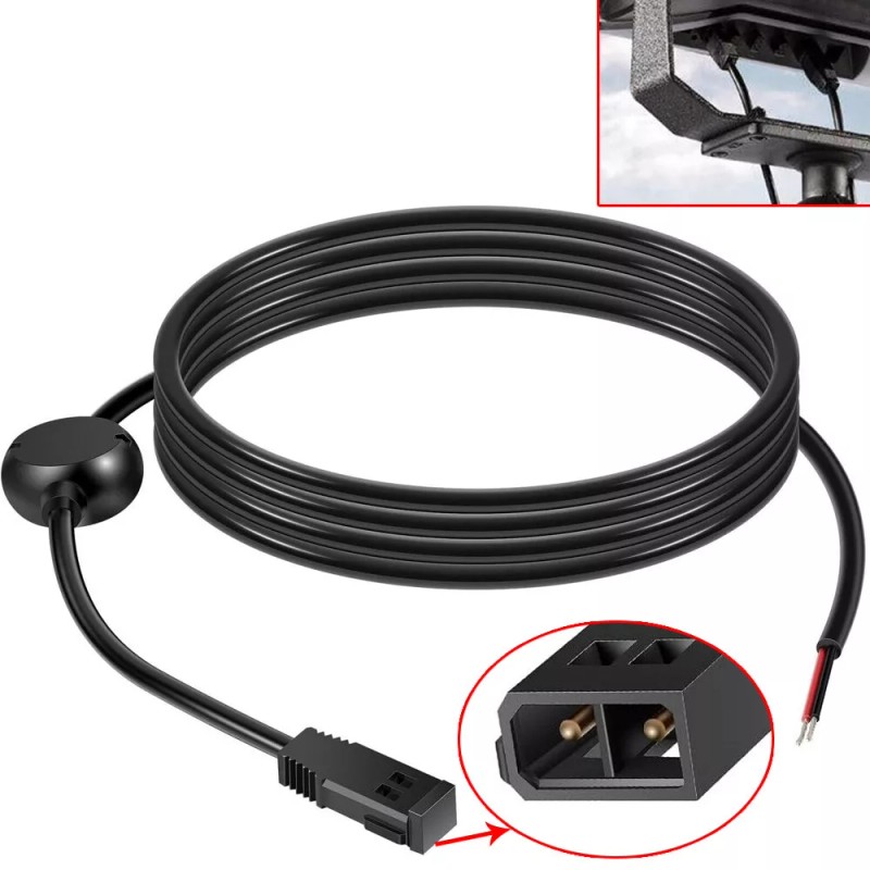 Attach the black wire to (–) ground, and the red wire to positive (+)12 VDC power.