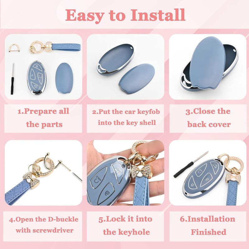 【KEY TPU COVER + KEYCHAIN】➤➤The package includes a for hyundai key fob cover, a keychain, and a screwdriver. The keychain is plated to avoid metal oxidization, rusting, and to improve corrosion resistance, wear resistance, texture, and glossiness. It perfectly complements the key cover and your car key