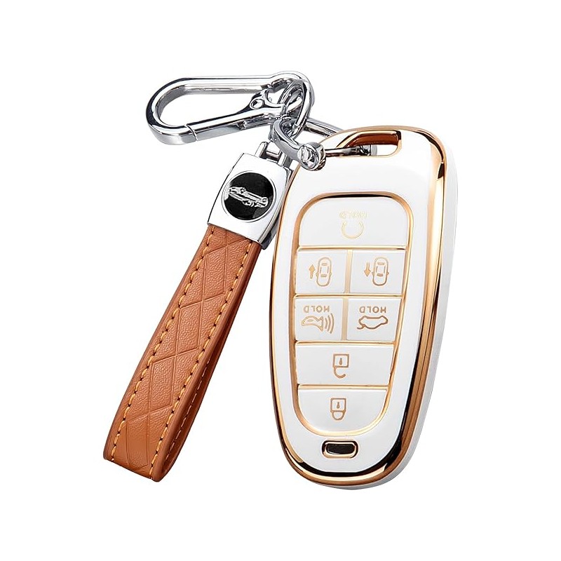 for Hyundai Key Fob Cover with Keychain, Premium TPU Key Case shell for 2024 2023 2022 Hyundai Sonata, Santa Fe, Nexo, Tucson, Palisade, Remote Smart Car Key Fob Protector(7 Buttons Ivory)