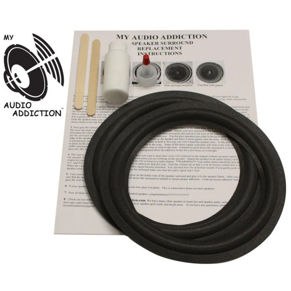 Included are two correct 8" surrounds, acrylic speaker adhesive, adhesive spreaders, and directions.